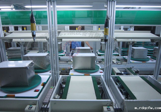电箱自动组装流水线:适合于装配、物料输送等用途,应用范围极广。可根据客户需要来设计制作,线体配置有:日光灯、气管、工具挂钩、工艺卡、仪表台、工作台、插座等,可由客户随意选择配置。设备价格合理,美观牢固。