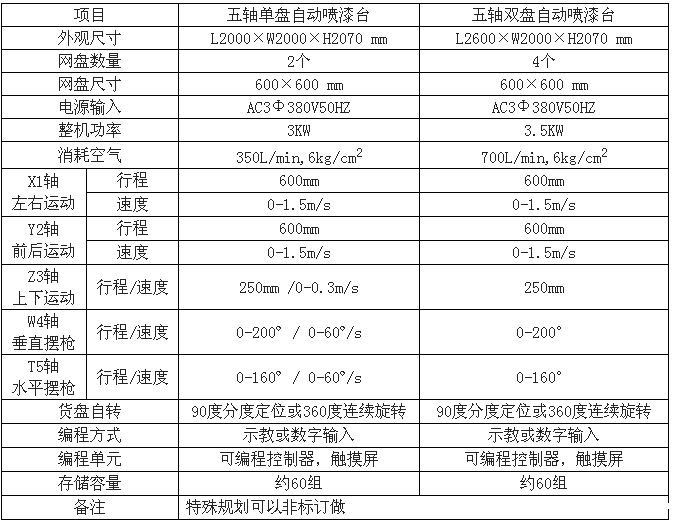 米兰体育官方网站首页五轴自动喷涂机技术参数