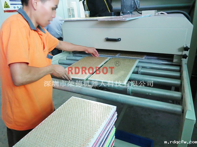 3.适合的产品是大平面的矩形产品,或者将小型的制品排成矩阵的形式放在托盘上喷涂.尤其是平面光油镜面的喷涂,是手工喷涂所不能做到的.